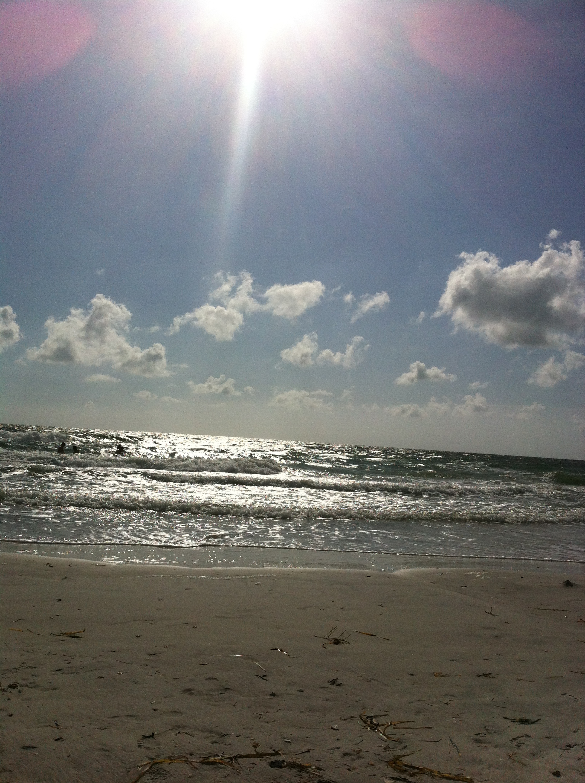 I’d looked online up and down the gulf coast for the most ideal place to spend a couple of days and decided that Clearwater looked like a nice choice. So, I started my drive there, but rather than take the direct route, I crossed the bridge over the Bay to Longboat Key, and drove north. Many years ago I had vacationed a few times in this area, so I had good memories as I drove all the way up along Longboat Key to Anna Maria Island, seeing places I’d visited years ago. I found a nice little public beach access, and with camera in hand, walked out onto the tip of Anna Maria Island. It is a beautiful beach, and the sun was shining brightly. I kicked off my sandals, walked through the hot sand into the warm waters of the Gulf of Mexico and took a few pictures of that beautiful beach.