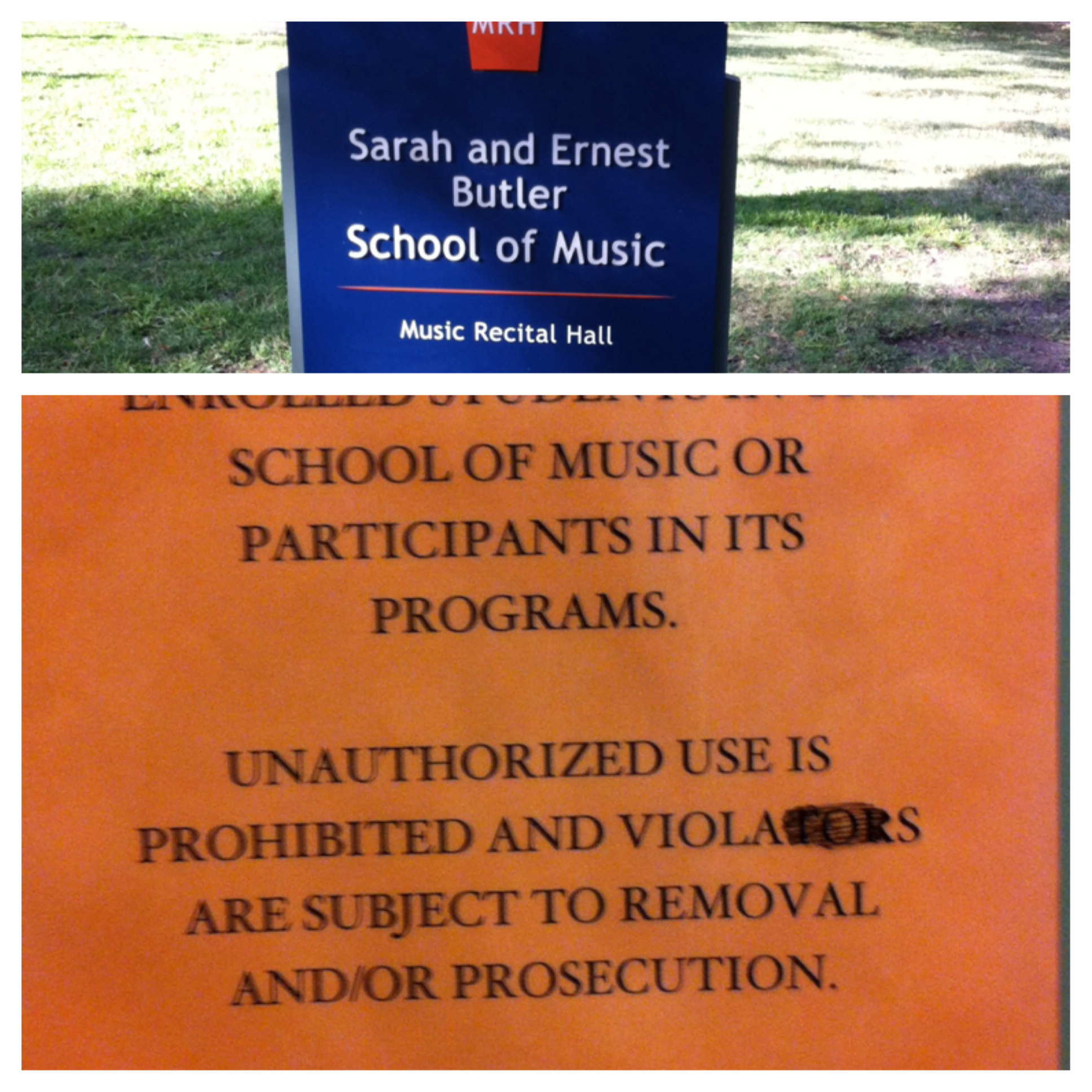 We headed back to the girls’ house and hung with them for a bit before Pat drove me to the University of Texas campus for a tour of the Butler School of Music. I was tickled to see that musicians everywhere have a sense of humor. (My apologies to any viola players out there)