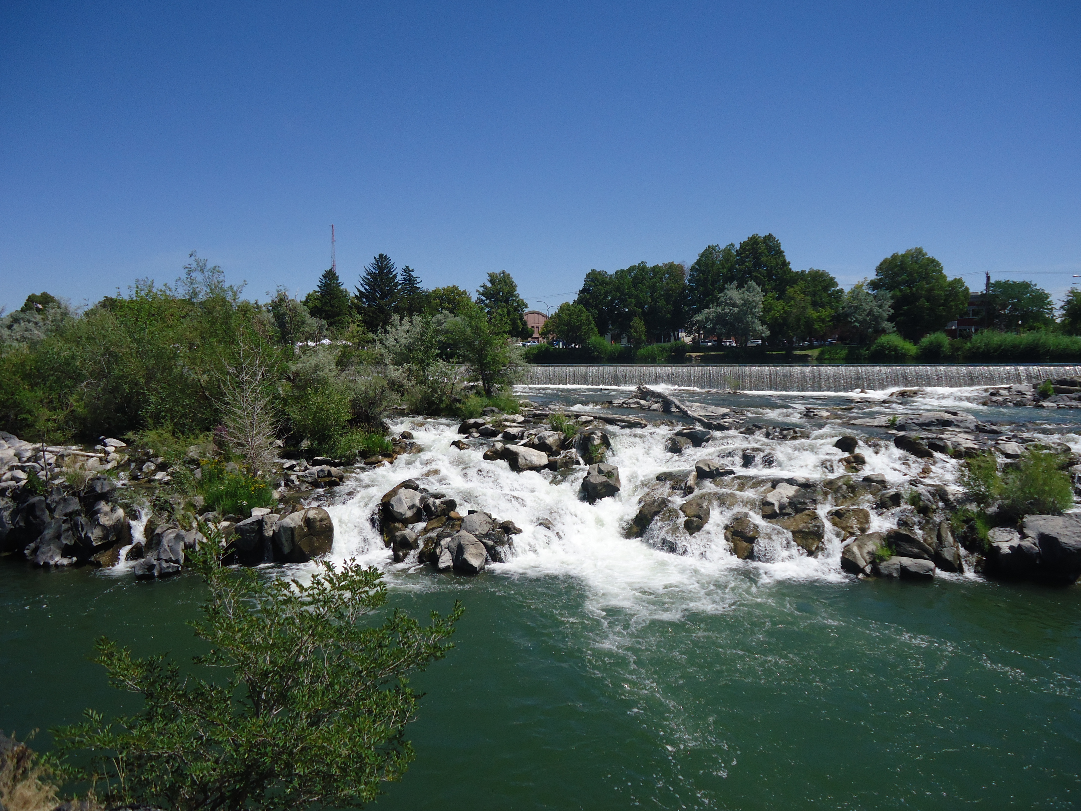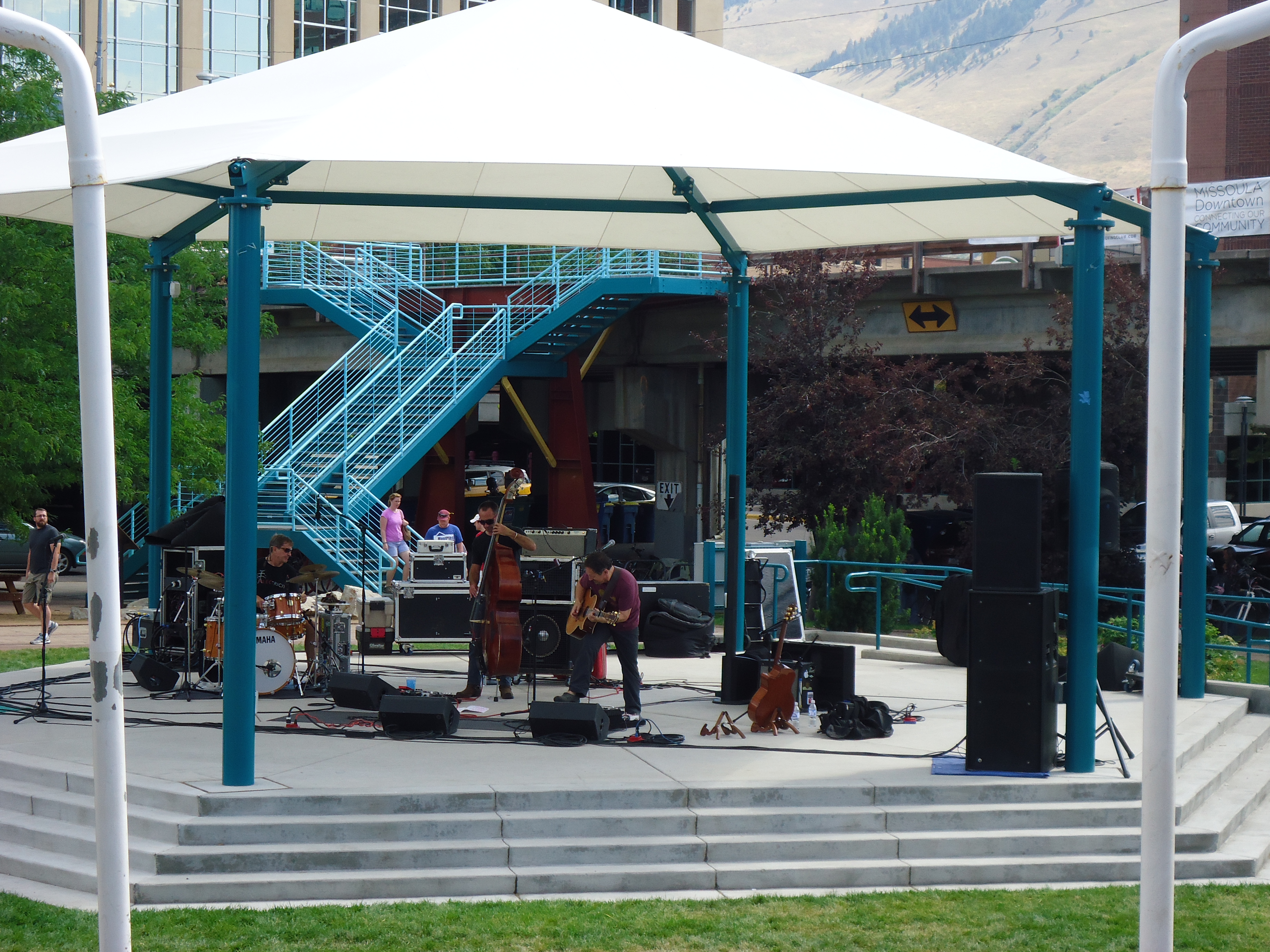 When I walked out the door I heard music – a guitar. I popped my head back in the restaurant and asked where it was coming from. The gal replied that Missoula holds a lunchtime concert series every day down at the river park, with food trucks and activities for kids including a carousel. So I made my way across the bridge that spans the Clark Fork River. Oh, another river for me to enjoy! I made my way down to the rocky banks, took my shoes off, and stepped into the cold clear beautiful water. Another one of my dreams fufilled – to have my feet in a Montana River.