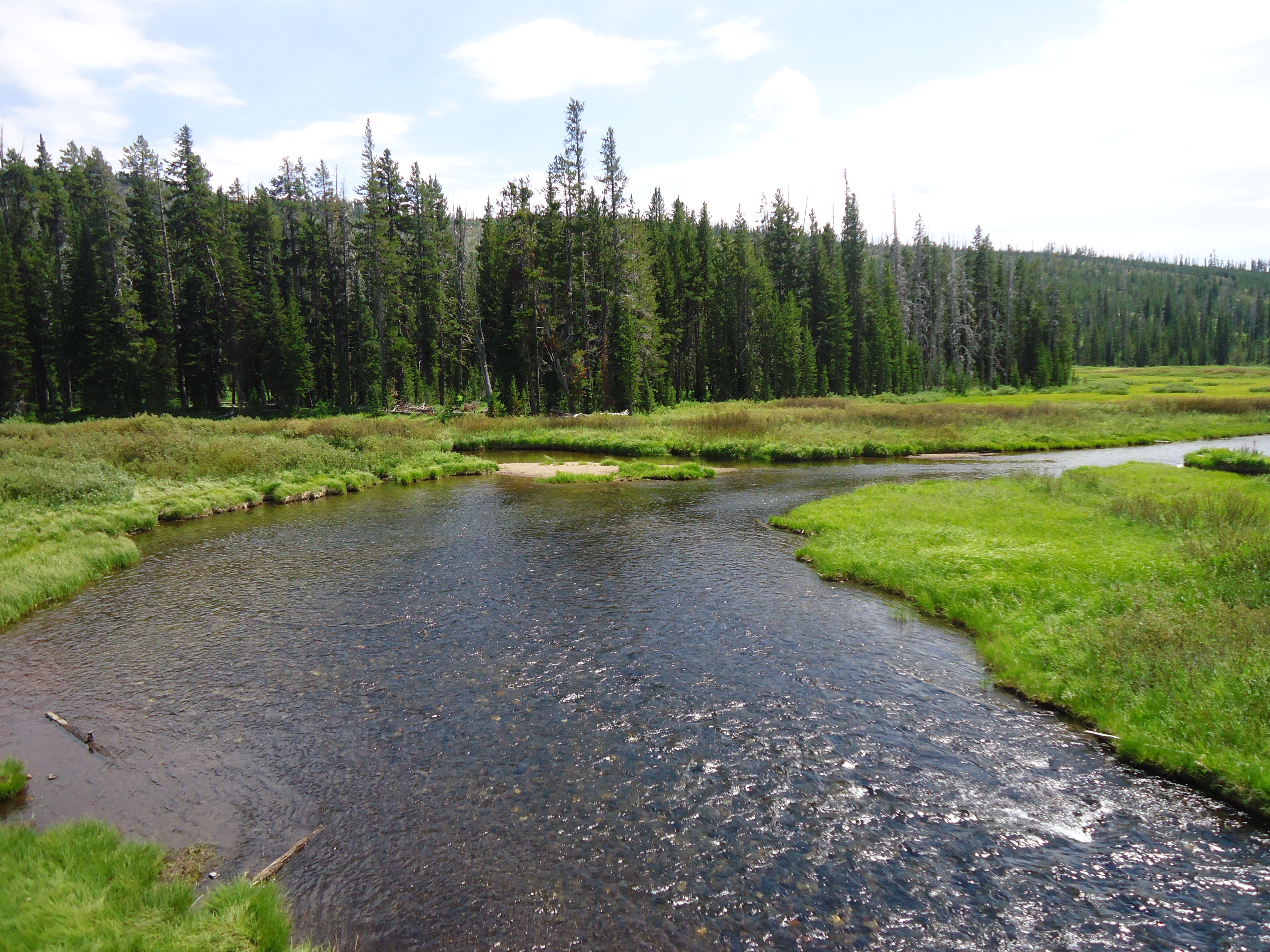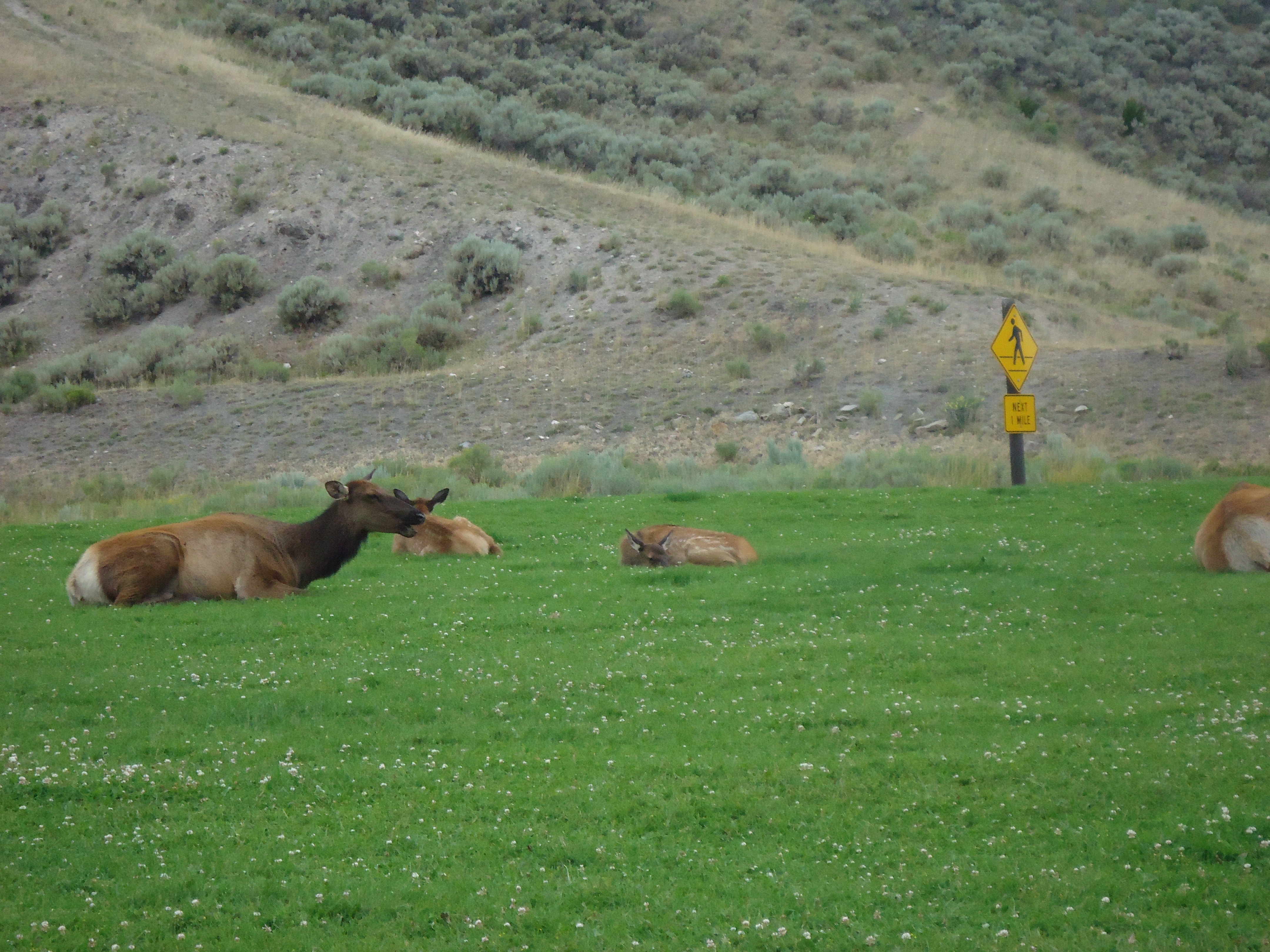 I passed through the town of Gardiner and then headed north into the Gallitin National Forest. The huge Absurakoka and Gallitin Mountain ranges immediately appeared before me – gigantic, overwhelming, and just a bit ominous. Perhaps it was because of the dark cloudy sky, but I felt intimidated, small, and scared as I drove through them. I continued on, and then noticed the beautiful Yellowstone River right next to me. It’s beauty as it wound around back and forth, sparkling and fresh, comforted me as I drove along the lonely expanse of 89.
