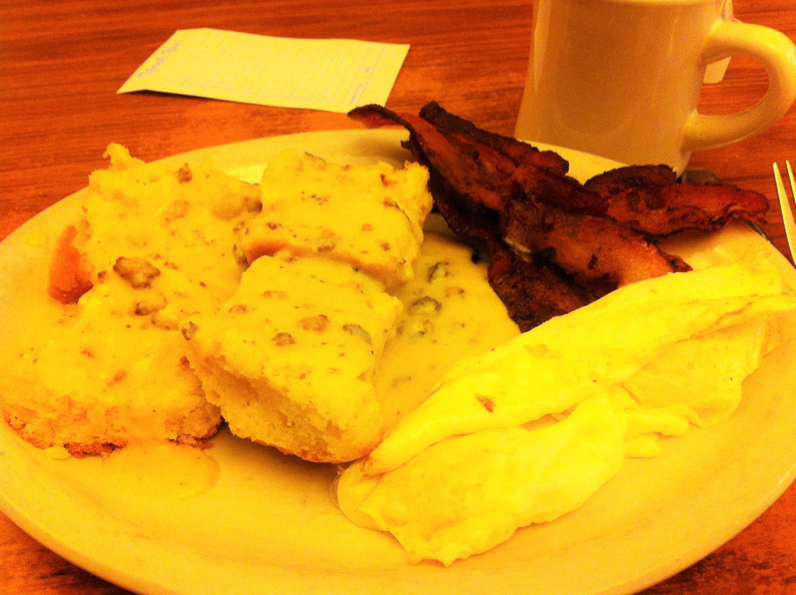 The next day I rose early. Since I’d not eaten dinner the night before, I went out in search of a good breakfast. Thanks to the wonders of Yelp, I saw a highly recommended little diner, The Western Cafe, right in downtown Bozeman. I walked in and was immediately taken with it. It was small, decorated like a page out of Field and Stream, had a long counter on the right and some small booths on the left. Country music was playing in the background. It was cozy and inviting. I took a seat at the counter and a handsome bald bearded guy with an earring and tattoos brought me a mug of coffee and a menu. I didn’t need it, as reviews on Yelp highly recommended the homemade biscuits and gravy. I ordered that with two eggs over easy and it came out in no seconds flat (I could see the cook preparing it!). It was one of the best breakfasts I’ve ever had.