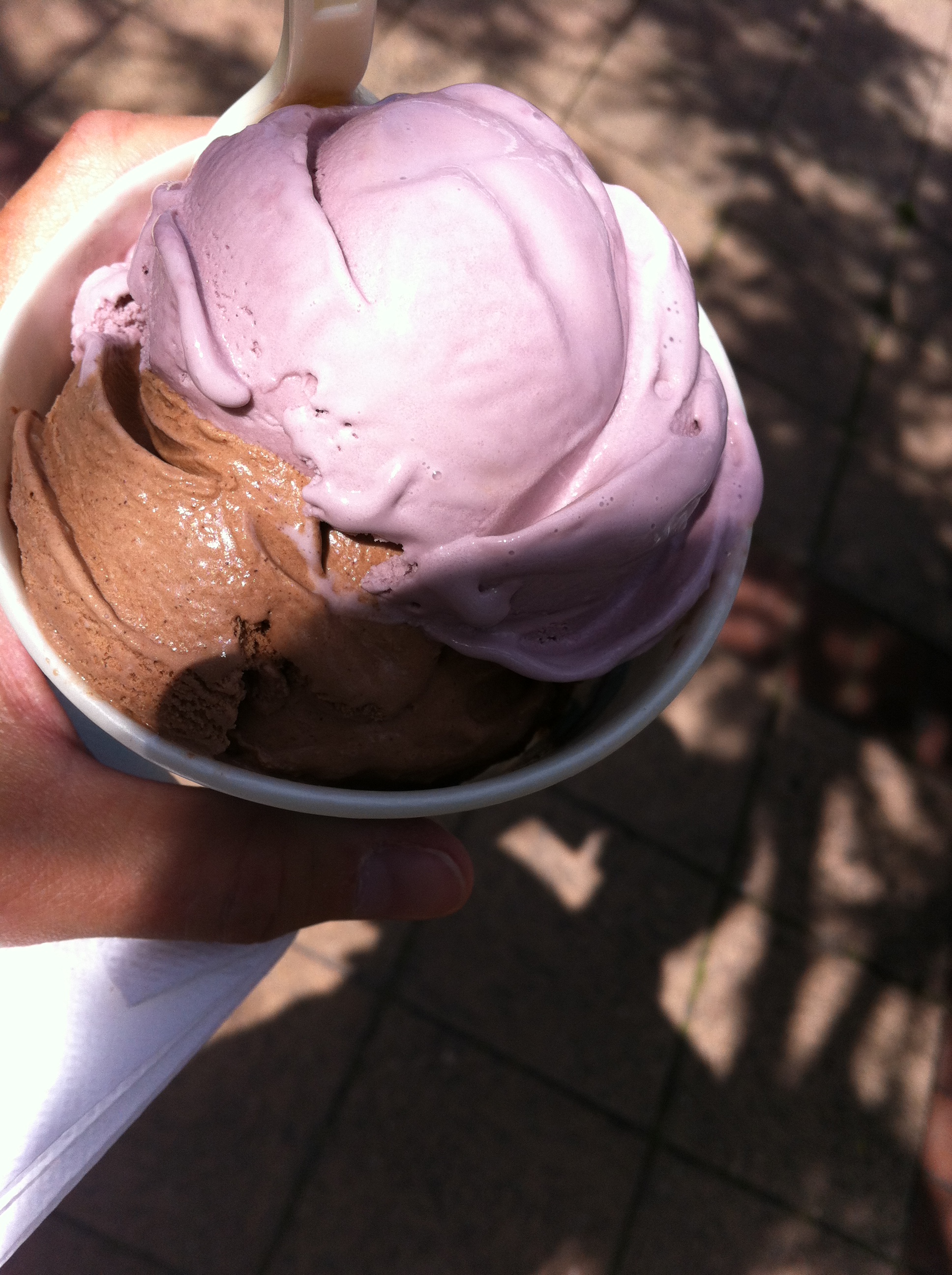 After that, I walked into the River Park and enjoyed a little music and walked through the long long tents with lots and lots of food vendors. I found a little ice cream stand and asked the gal what she would recommend and she said, “Well, you’re in Montana, you have to try the Huckleberry!” I opted for that, and she offered another scoop of a different flavor, and I chose Mexican Chocolate. It was delicious!