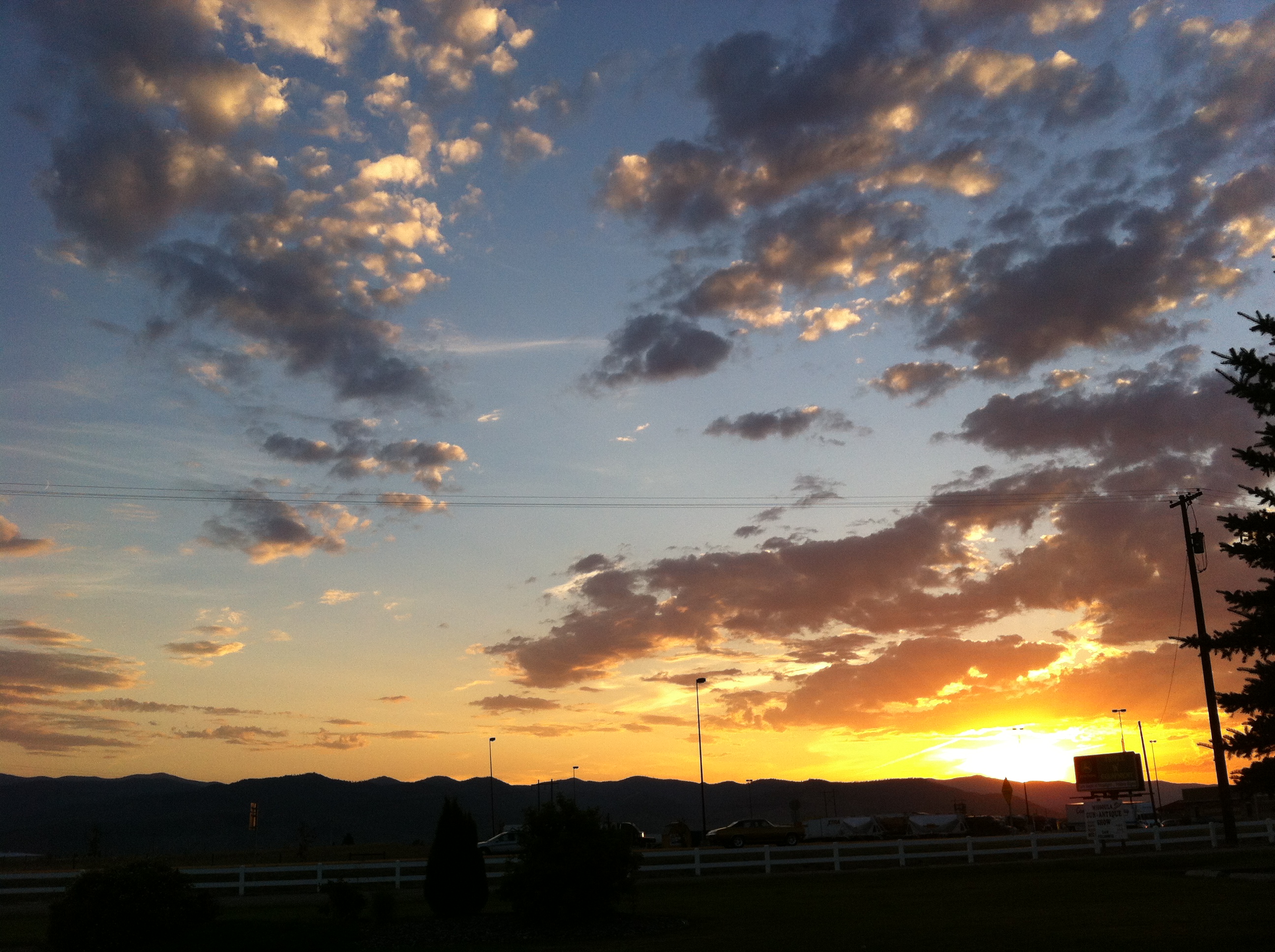 My phone rang – my car was ready for me, and it was only 12:30! I walked the short distance to the shop and picked up my car, which had nice new front rotors. I headed back to the motel and wrote the rest of the afternoon. That night, I sat outside on a picnic bench and witnessed one of the most stunning sunsets I’ve ever seen. Again, I wish my pictures could do it justice.