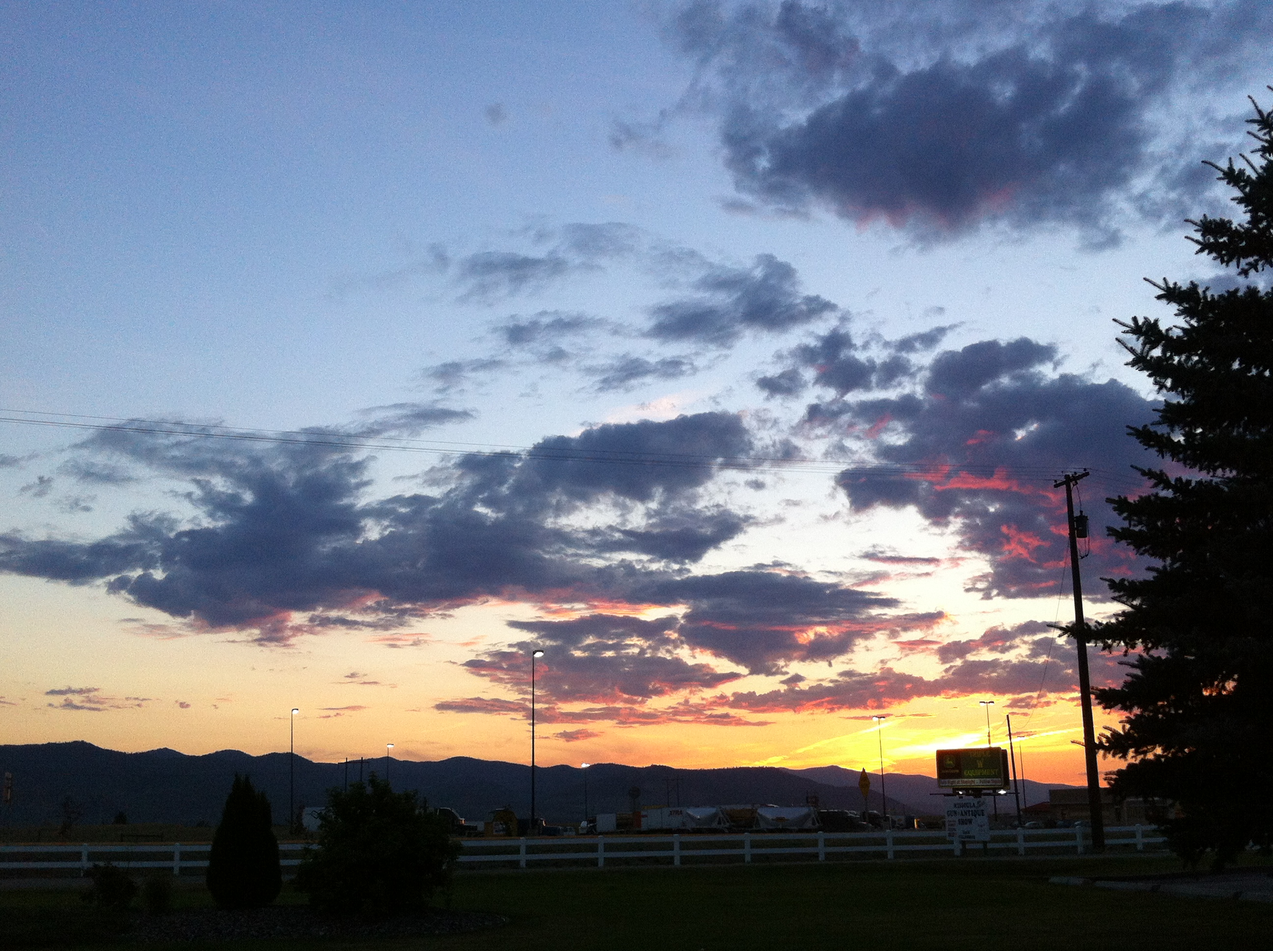 Oh, well, I thought, it’s only for one night. I entered the lobby to check in, and a sturdy, no-nonsense but friendly Montana bred woman checked me in. And I got an actual plastic old fashioned key. With building dread, I found my room, turned the key, and walked in – to one of the cleanest, most well maintained rooms that I’ve been in my entire trip. The bedding was brand new and beautiful. The towels were snow white and soft! The bathroom was spotless! I was relieved and delighted. Exhausted from the long day in two national parks, and too tired to go out for food, I poured myself a bourbon on the rocks, grabbed a little sweet cigar, and walked outside to enjoy the sun setting – marveling that it did so at 9:45pm!!! It was so beautiful and peaceful. I enjoyed the night breeze and the colors of the sky.