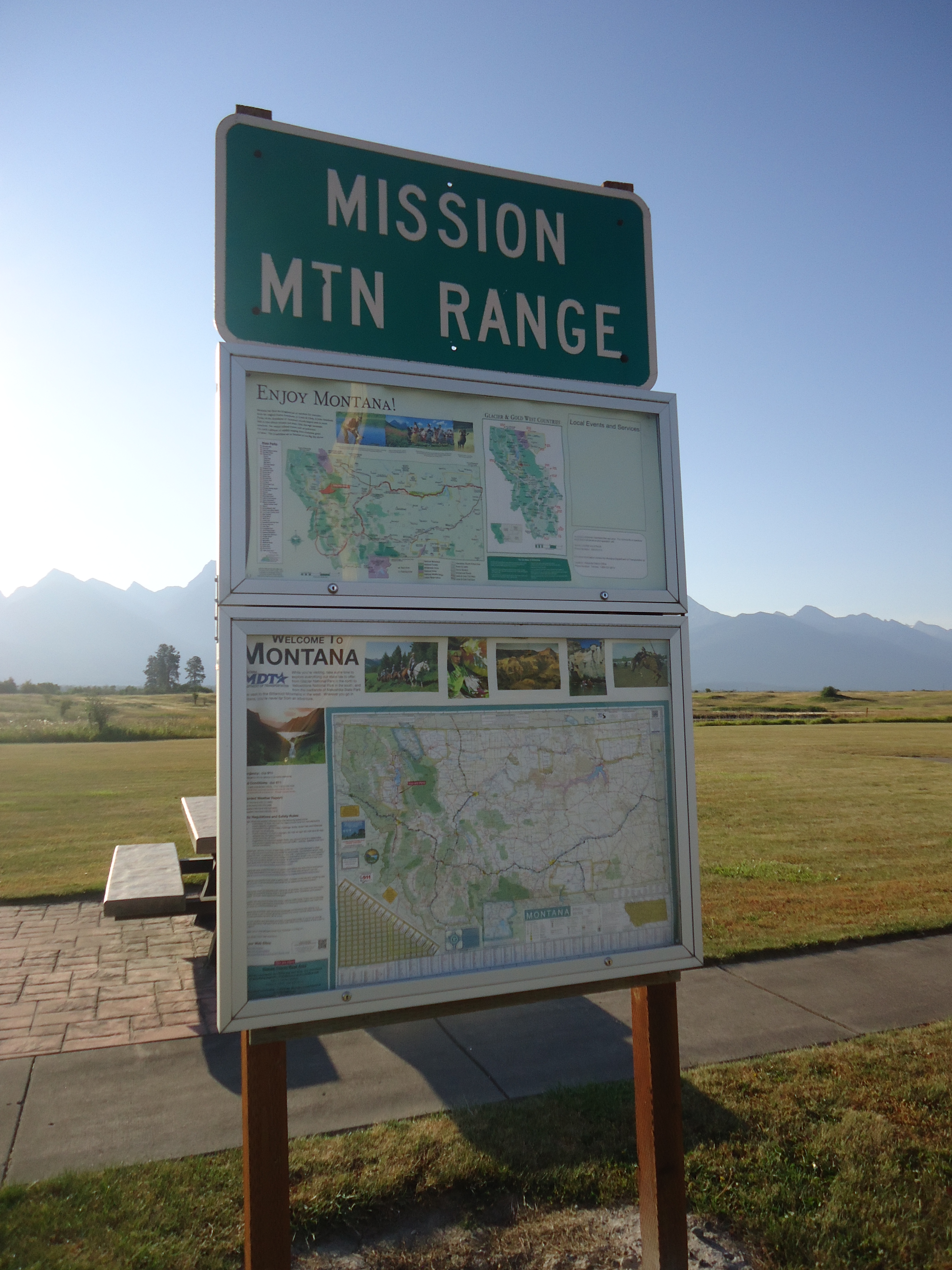 I had been staying in Missoula which is south of Flathead Lake. I made a reservation the following night in Kalispell, which is north of Flathead Lake. I had two choices: to drive from south to north on one side of Flathead Lake (either 93 or 35) and only see half of it, or to drive all the way around and then back up again. Since I was starting so early that day, and had nothing else to do, I decided to see the entire lake and then some. So, I left Missoula early and started the hour drive north to Flathead Lake on Route 93. Soon I began to see some beautiful mountains on my right. I stopped at a little informational pulloff and saw that they were the beautiful Mission Mountains.