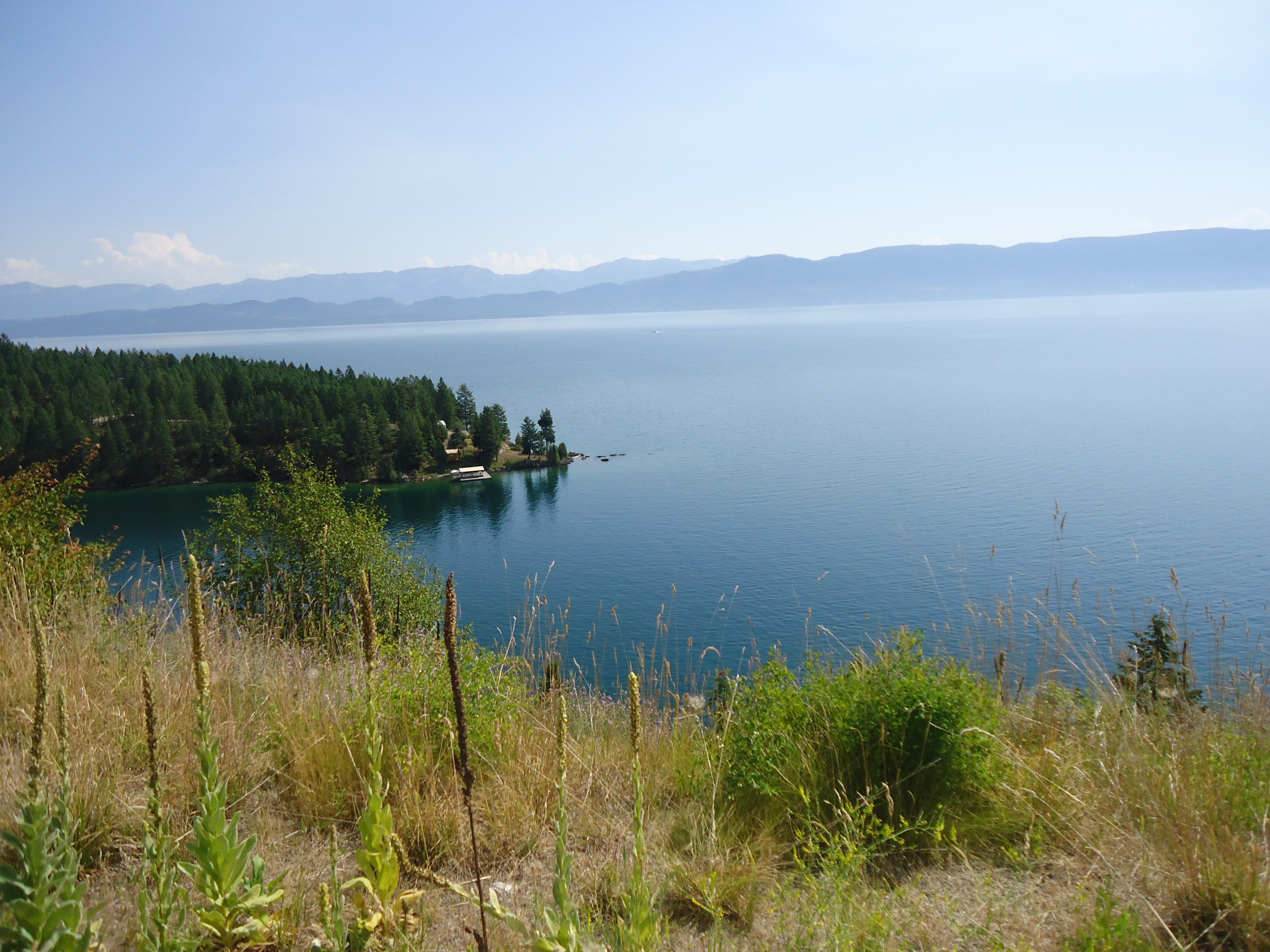 Finally I came to a scenic view pulloff and there it was, in the distance, my first view of Flathead Lake!