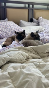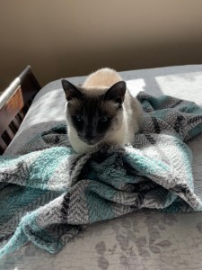 At the end of November, I traveled to San Diego the week before and the week of Thanksgiving to housesit for Renée as she ventured to the Cook Islands for yet another paddle race! As always, I took full advantage of my time there. First, I returned to Joshua Tree to hike a trail that had been completely fogged in a couple of years ago. This time, the weather was absolutely perfect and I had unbelievable views at the top of the Panorama Loop. Of course, I can’t go to San Diego without a trip to the Meditation Gardens in Encinitas. It was more beautiful this visit than ever – a crystal clear blue sky and very windy, which produces beautiful waves. Tons of surfers out enjoying those for sure. THe day before Thanksgiving, I strolled along the beach at Oceanside Harbor in shorts, a tank top and flip flops, enjoying the warm sunshine, seagulls and the salty air. The warm sun on my face and my feet in the Pacific – doesn’t get much better than that! On Thanksgiving Day, I treated myself to a taste of home by making my mom’s spaghetti sauce, and enjoyed that with a lovely bottle of red that Renée left for me. The kitties, as always, kept me good company. How I love getting my kitty fix out there.